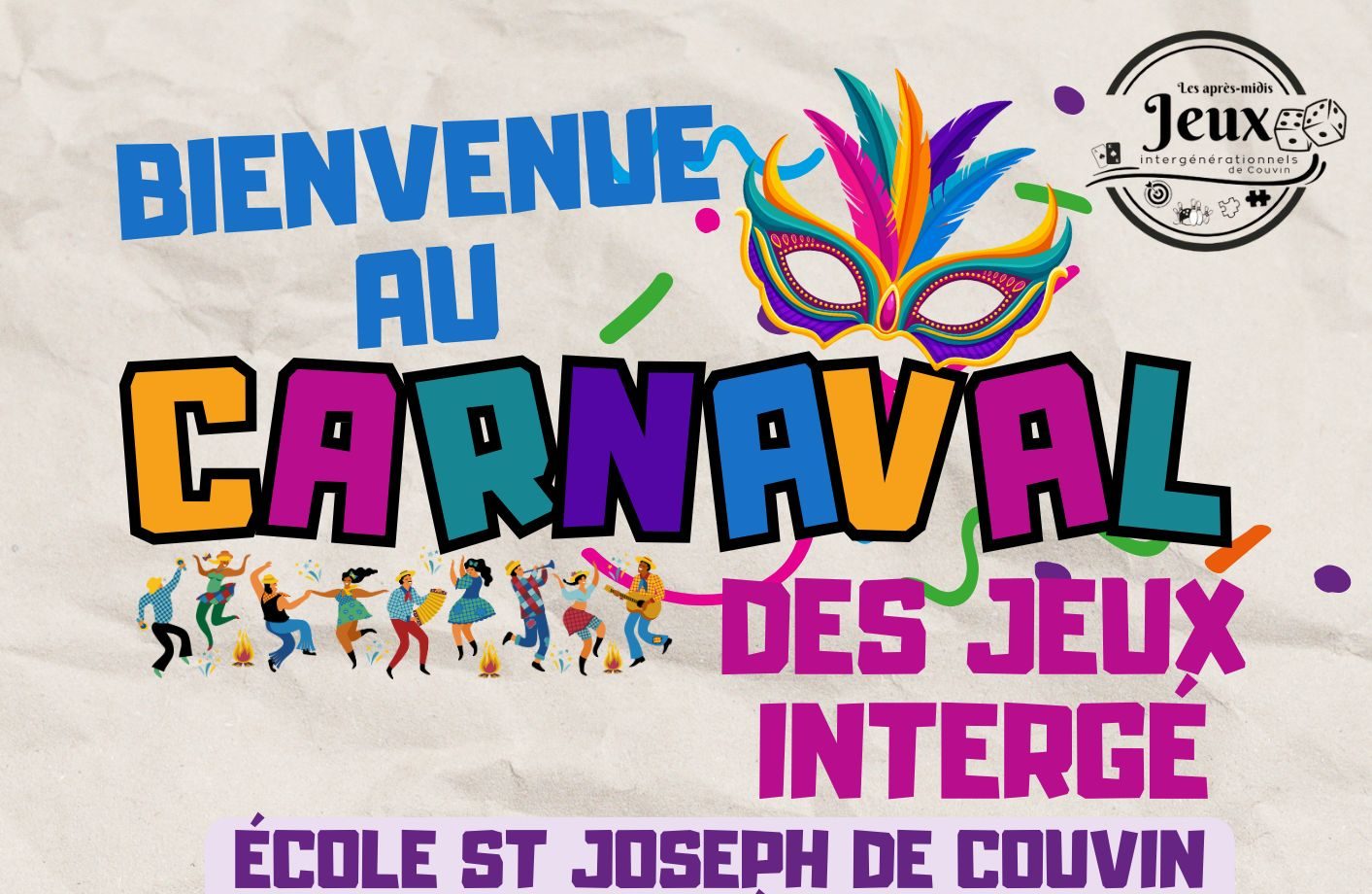 Le collectif des jeux intergénérationnels de Couvin vous invite à son carnaval ! Venez déguisés ! On vous attend nombreux !!